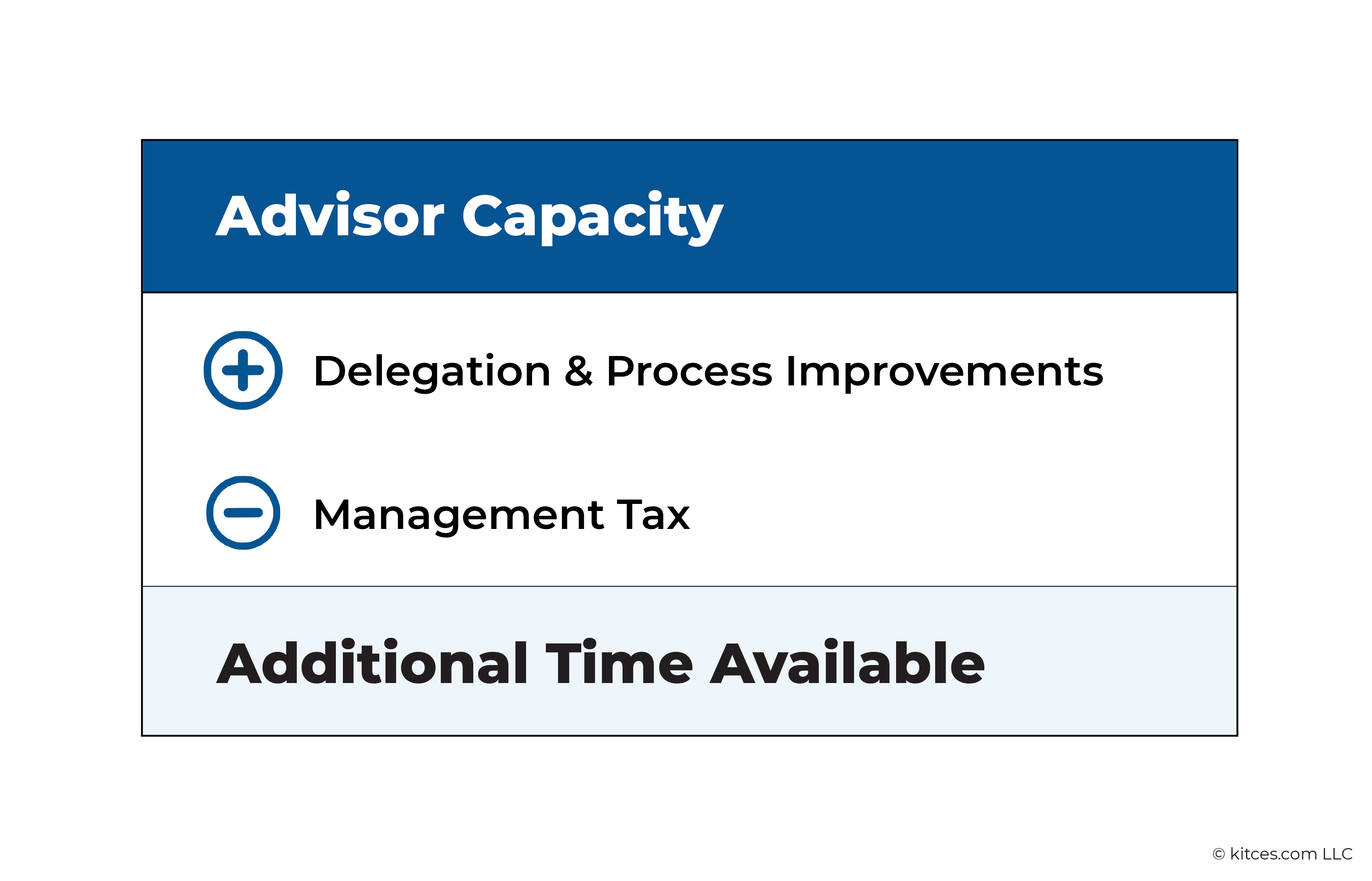Hiring inevitably changes the lead advisor's capacity. Yes, they are able to delegate more work, but at the cost of the 'Management Tax' – the time spent hiring, training, aligning the team day-to-day, and conducting annual reviews. The goal is that time gained through delegation more than offsets the time 'lost' to the responsibilities of managing the team, ultimately allowing the firm to service more clients.