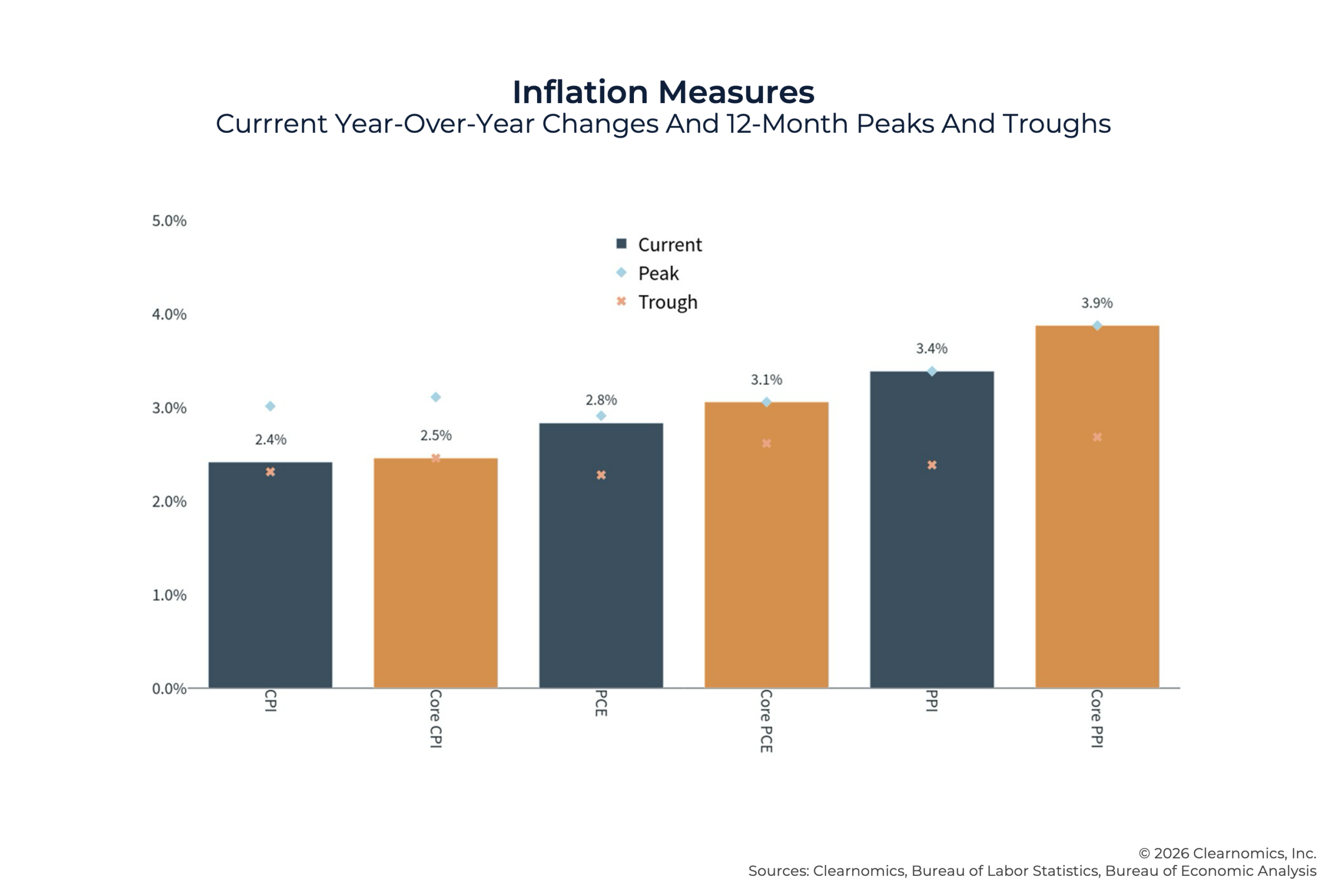 - Wholesale inflation has added to concerns, with the Producer Price Index rising 3.4% year-over-year, suggesting that pipeline price pressures have not fully dissipated and could continue to feed through to consumer prices over time.