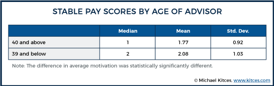 Notably, though, the “Stable Pay” motivator doesn’t have a particularly strong relationship to any of the categories! Perhaps not surprisingly, it does connect most closely to the other Extrinsic (typically-compensation-related) motivators, but far less so. Though given the historical context of the industry, this may simply be explained by the fact that in the past, the only path to becoming a financial advisor was an “Eat What You Kill” environment of getting your own clients, from scratch, on Day 1. Which means those who highly valued Stable Pay – which financial advisor jobs of the past rarely offered – probably wouldn’t have stuck around to be financial advisors (and show up to take our research survey!). On the other hand, the rise of “employee advisor” roles that have less of a business development obligation may be slowly shifting this landscape; for instance, amongst advisors under age 40, Stable Pay was at least a slight motivator, compared to advisors over 40 it was very clearly not a motivator (because if it were, they probably wouldn’t have stuck around in the financial advisor career when they started 20+ years ago!).
