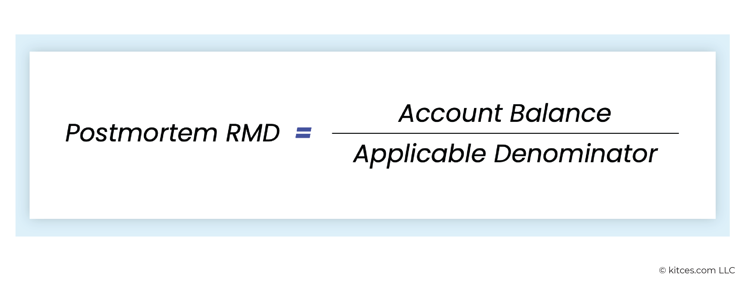 Postmortem RMDs are determined by dividing the account balance by an 'applicable denominator' value. For all retirement accounts, the account balance is measured as of the prior calendar year. For IRAs, the year-end (12/31) balance must be used, which is also the standard practice for most employer-sponsored retirement plans. This balance is calculated the same way regardless of the type of beneficiary.
