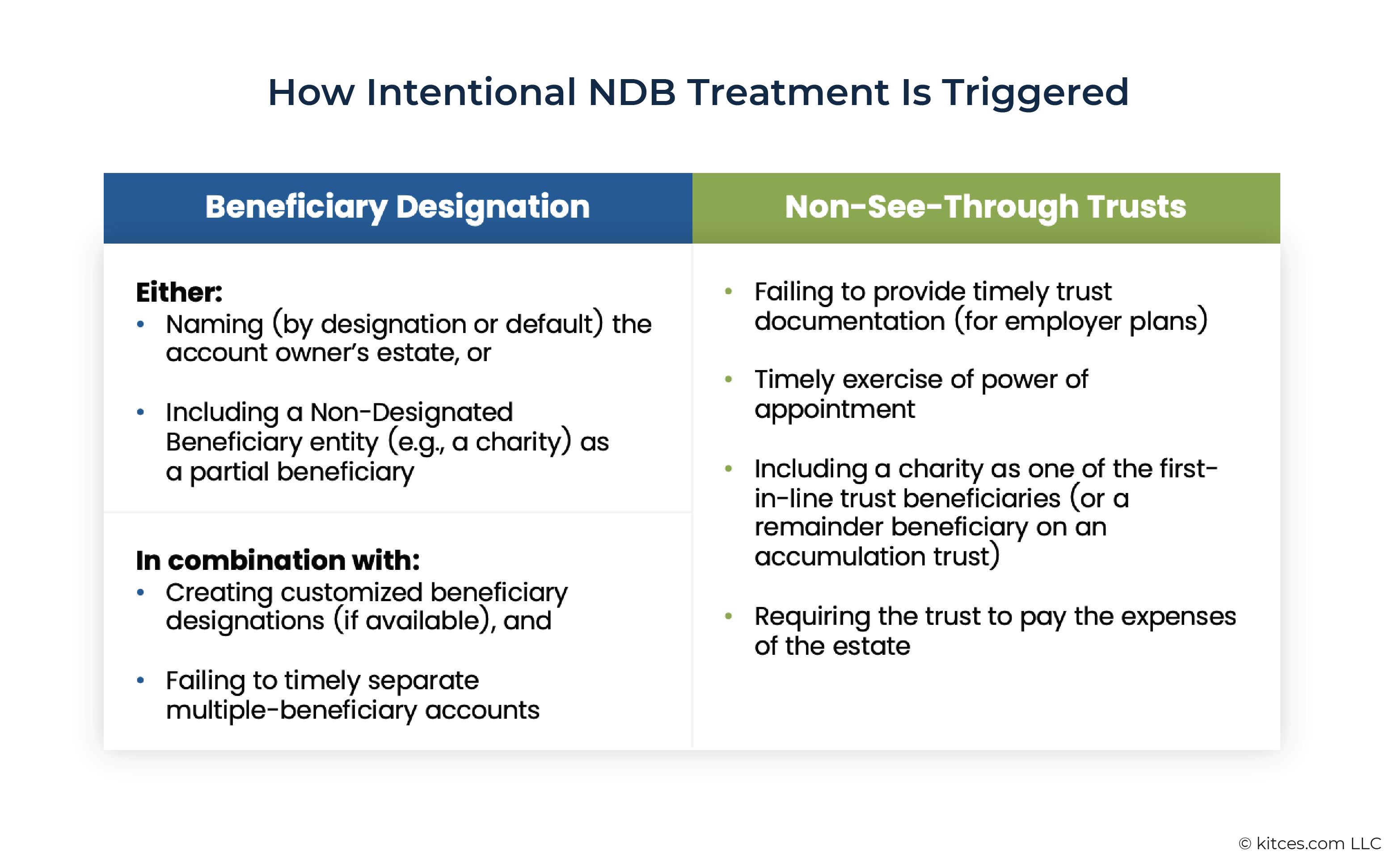 Broadly, there are two ways to trigger Non-Designated Beneficiary treatment intentionally: through the beneficiary designation itself or by using a non-see-through trust.