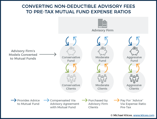In other words, rather than XYZ advisory firm having a series of “conservative,” “moderate,” and “aggressive” portfolios, which the advisory firm manages, and from which (non-deductible) advisory fees are paid… the advisory firm could instead establish its own mutual fund or ETF (or series of them), and then give clients the option to invest into XYZ Conservative ETF, XYZ Moderate Growth ETF, or XYZ Aggressive Growth ETF.