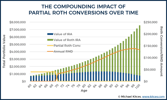 For those already facing an annual RMD obligation, taking additional distributions from the account of the oldest spouse can at least help to whittle down future RMD obligations. For those who haven’t yet reached the RMD phase, though, often the biggest opportunity is to engage in systematic partial Roth conversions, whittling down the size of the retirement account before RMDs ever begin!