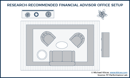 The traditional financial advisor's office is setup with a desk that the advisor sits behind, and chairs for clients to sit across. Alternatively, many financial advisors use an office conference room to meet with clients, but the arrangement is similar: a large conference room table, with the financial advisor sitting on one side, and clients sitting on the other. To the extent that any further thought goes into the office design, it's mostly focused on which type of furniture to buy, what paintings should go on the wall, and other classic elements of office interior design.