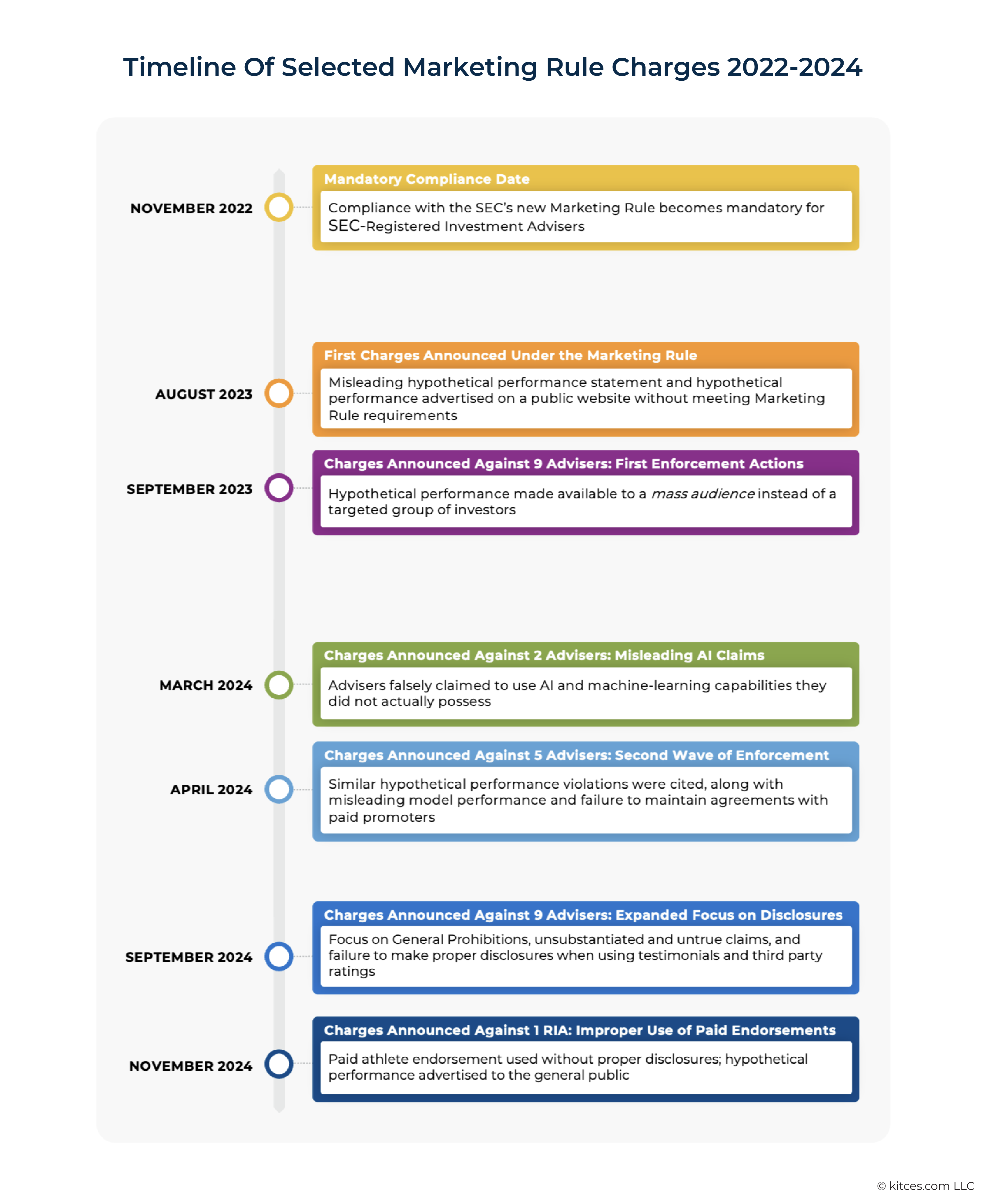 November 2024. Fast-forwarding another two months, the SEC announced charges against another RIA for using paid athlete endorsements without the required disclosures and for advertising hypothetical performance to the general public on its website.