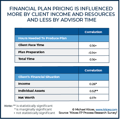 On the other hand, what did matter in the pricing of financial planning services was the affluence and complexity-needs of the client. In other words, financial plans are being priced on tthe value of what the planning is worth “to the client” given their own financial needs and situation – not the time it takes to actually make the plan. Or stated more simply, it appears that financial advisors price financial planning primarily using a value-based pricing approach (i.e., what is value to the client), and not cost-plus pricing models (i.e., pricing based on the cost to produce the plan plus a profit margin).