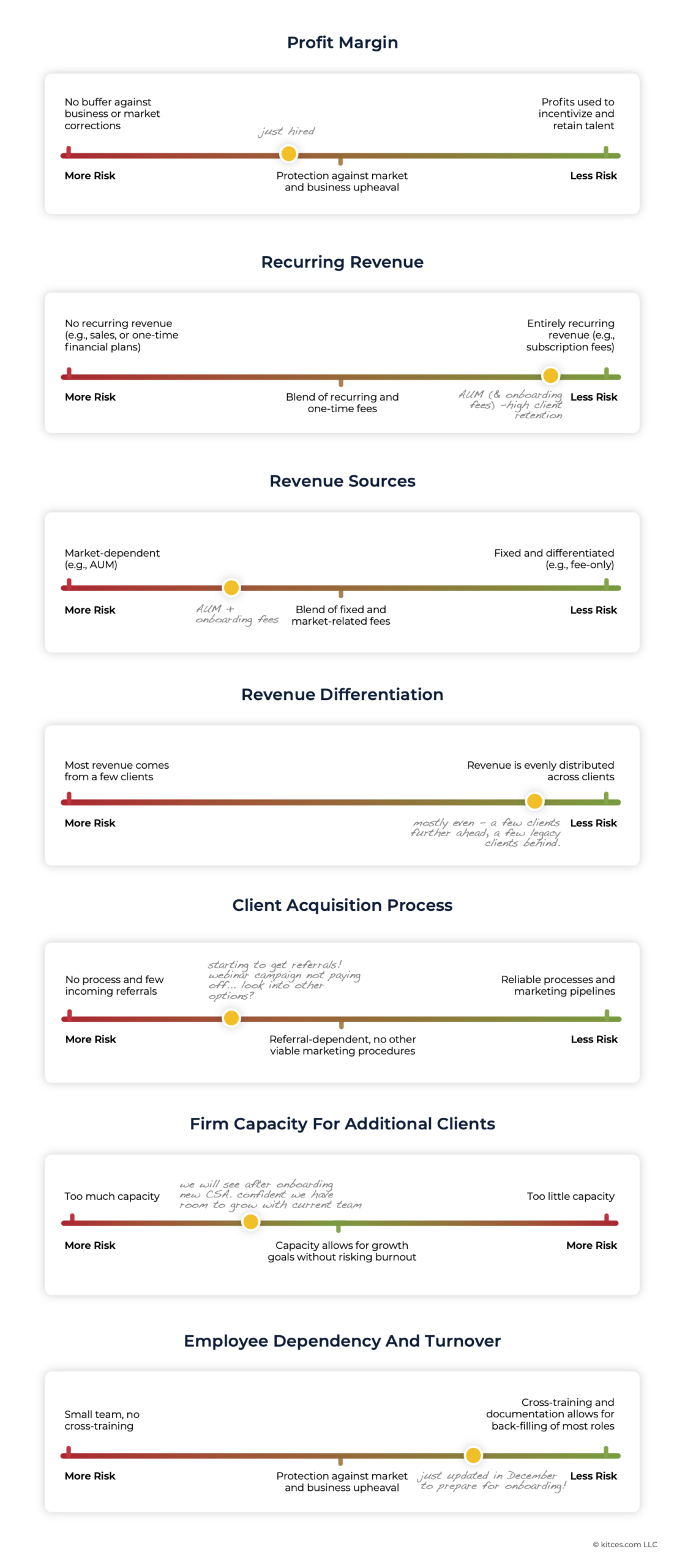 However, just as clients tend to overlook or misunderstand the risk they may 'actually' be undertaking, so too can advisory firm owners. In some ways, as noted above, this is a necessary attribute of all entrepreneurs… and in others, it's possible to dangerously understate the amount of risk that has been undertaken, especially with the many pieces of the firm that are moving in conjunction. For example, imagine a small advisory team that has had an influx of clients, and everyone's capacity during the workday is tight. The firm's profit margin is high, but a few team members are locked in a place of high stress, placing them at risk of burnout – and at a small team, any team member quitting or even taking prolonged leave can create a domino effect of stress, burnout, and limited capacity.