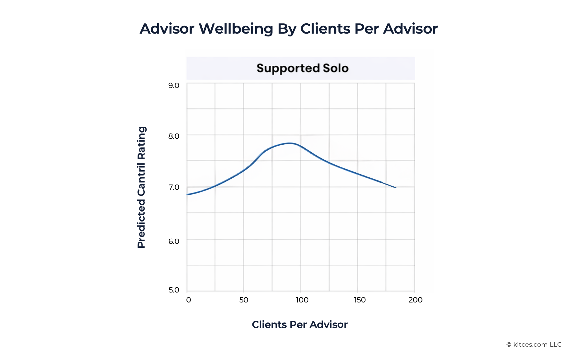 Kitces Research on What Actually Contributes To Advisor Wellbeing points to the crossroads of the number of clients an advisor can serve, while still maintaining high levels of self-reported well-being. For an advisor with support staff, satisfaction typically peaks between 75 and 100 clients – more than that, and advisors either may not give the depth of advice they'd like, or they risk working too many hours to accommodate client needs.