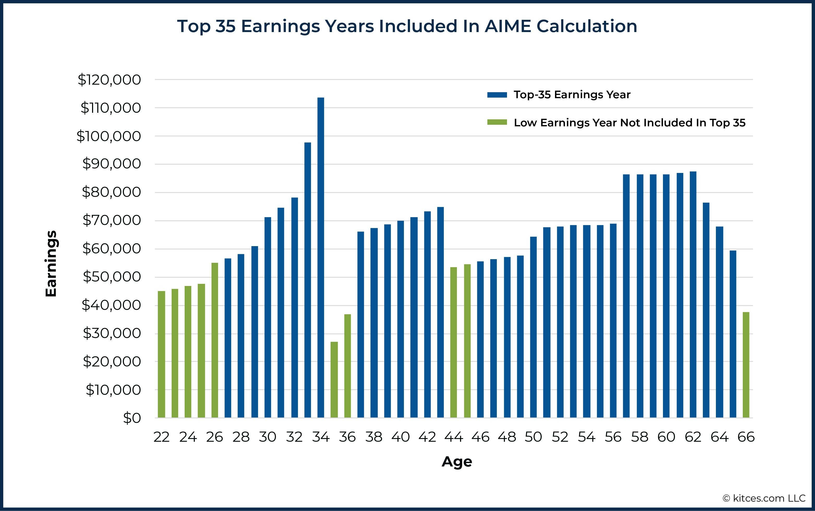 With regard to the first factor, earnings history, an individual’s highest 35 years of wage-inflation-adjusted earnings are used to calculate their Average Indexed Monthly Earnings (AIME).